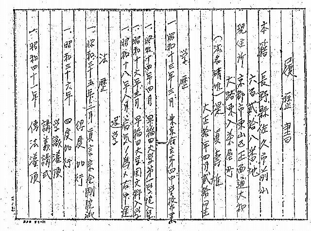 資料:桐山氏の自筆の履歴書