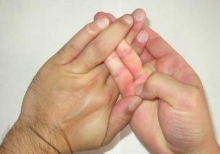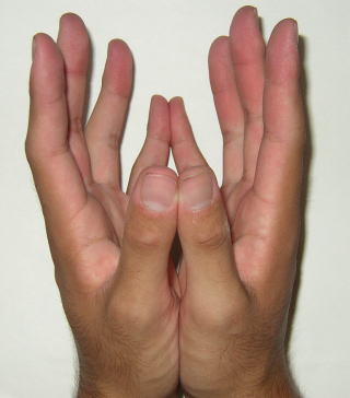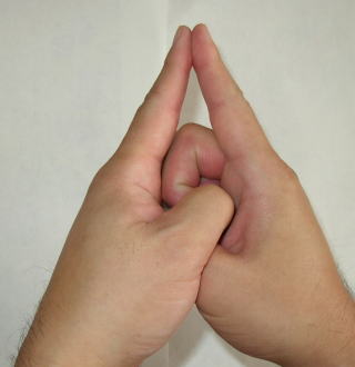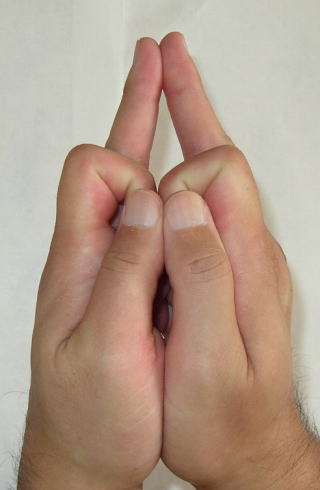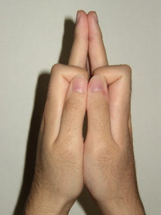 両手を合掌しそのまま人差し指を内側に曲げて